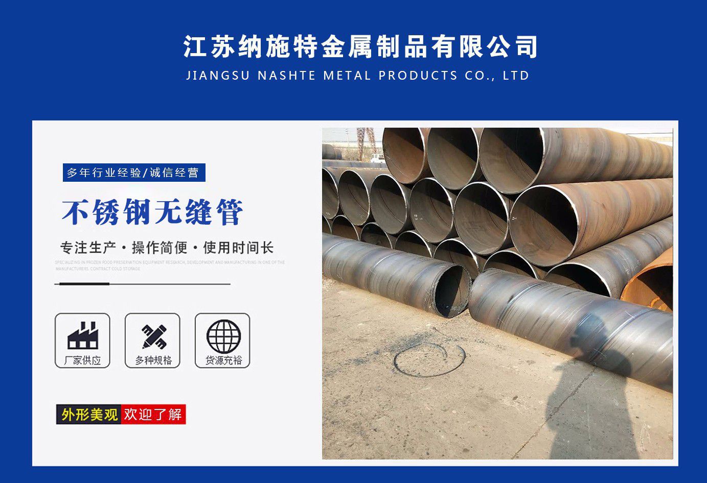 江蘇納施特金屬制品有限公司是一家集生產205不銹鋼無縫管,2507不銹鋼無縫管,316l不銹鋼焊管廠家,不銹鋼工業焊管廠家,厚壁無縫鋼管廠家等產品,公司庫存多規格齊全、質量保證。公司一貫以服務至上、質量至上、價格合理、客戶至上、讓利客戶、薄利多銷為原則,誠實守信為宗旨?! 」颈小皟炠|的品質和服務創造企業品牌”之宗旨,與國內外多家知名廠商建立了長期穩定的合作伙伴關系,精心匯聚各廠商的品牌產品,實現了資源互補,以適應市場的不同需求,協助廣大廠商提高自身的競爭力,是您的理想合作伙伴?! 」鞠聦伲簶I務部、財務部、快運部、運輸部、倉儲部、加工部、(自備貨車、吊車、行車、自動切割、半成品)免費為用戶提供裝卸等一條龍服務。保證用戶利益、互惠互利做生意、誠心誠意交朋友?! 》粘兄Z:提供優質的不銹鋼及有關產品,遵守道德標準,努力提供獨特的產品和高水平服務?! ≠|量承諾:隨時為客戶提供產品和服務,充分領會客戶要求,盡職盡責,永無例外,竭盡全力,持續發展。 公司秉承:“顧客至上,銳意進取”的經營理念,堅持“客戶至上”的原則為廣大客戶提供優質的服務?! ≡肝覀児竞蜕鐣鹘缤?、諸位朋友、尊貴的各位客戶攜手并進,共同發展,同繪新世紀的宏偉藍圖! 公司宗旨:優質的品質和服務創造企業品牌。 經營理念:以...